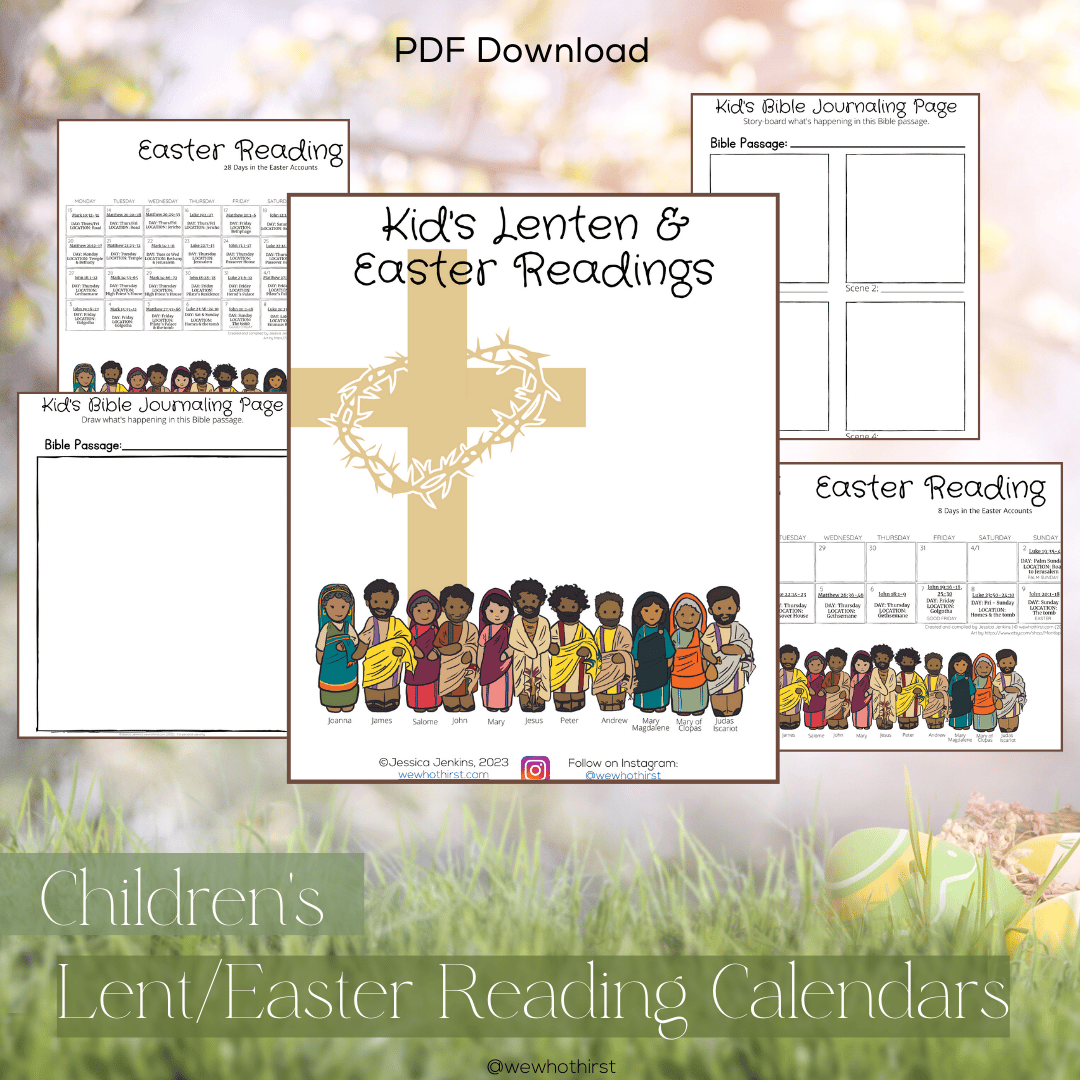 Each calendar will guide you through the Easter passages chronologically, noting the day of the week on which those events occurred and their geographical locations. The simple, minimalistic format make them perfect to print off and slide in your Bible for easy reference.